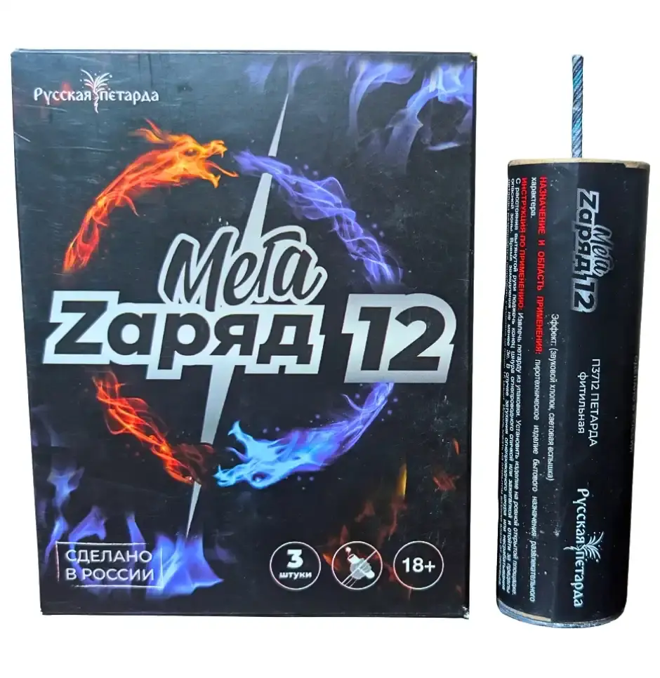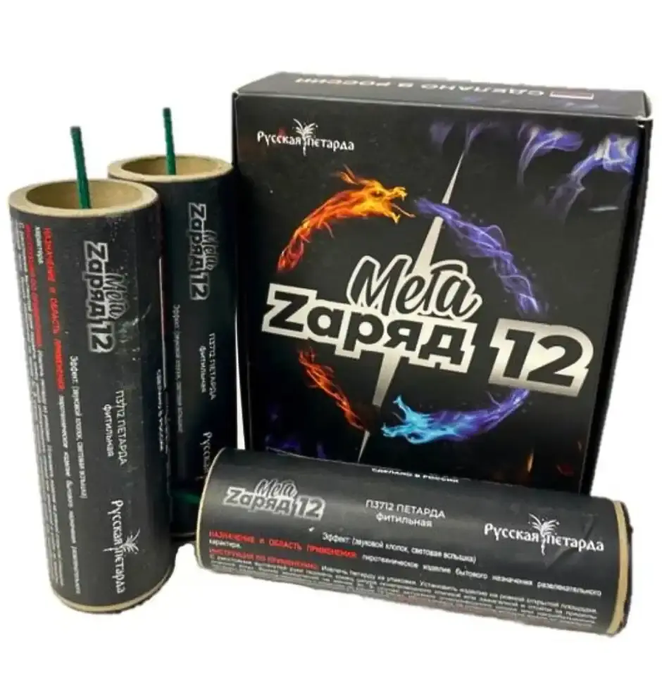 Петарда П3712 Мега Заряд 12 от бренда Русская Петарда — это мощный трёхзарядный набор, способный подарить ощущение настоящего пиротехнического драйва. Каждая петарда содержит 22 грамма флеш-состава, создающего глубокий, насыщенный звук и яркую вспышку.