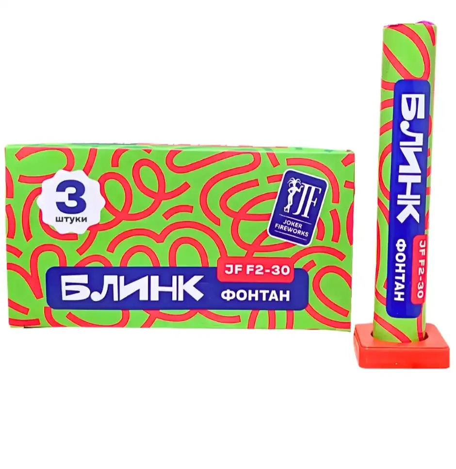 Набор фонтанов JF F2-30 «Блинк» от бренда Joker Fireworks — это идеальный вариант для тех, кто хочет получить максимум эмоций от компактной пиротехники. В упаковке три различных фонтана, и каждый из них раскрывается своим уникальным стилем: цветные искры, треск, динамичные переходы и плотные россыпи искр. Все изделия работают примерно 30 секунд, создавая яркую и насыщенную атмосферу.