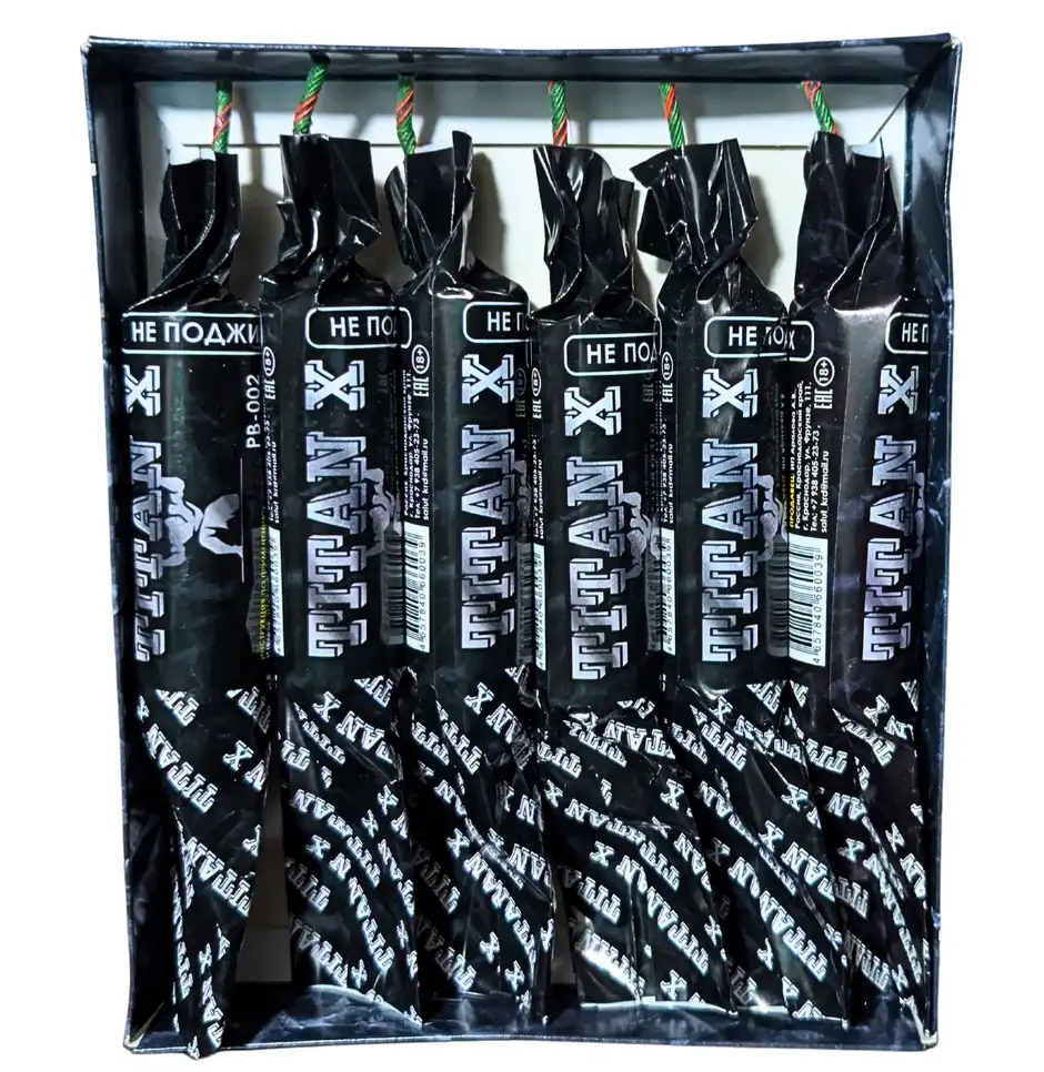 В упаковке — 6 штук. Каждая петарда содержит 10 грамм титанового состава, что даёт мощный звук и плотный поток искр. Эта серия создана для тех, кто ценит не только громкость, но и зрелищность.