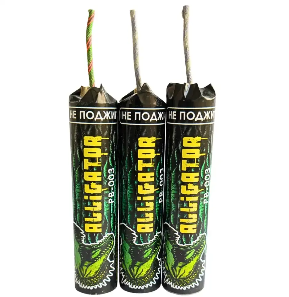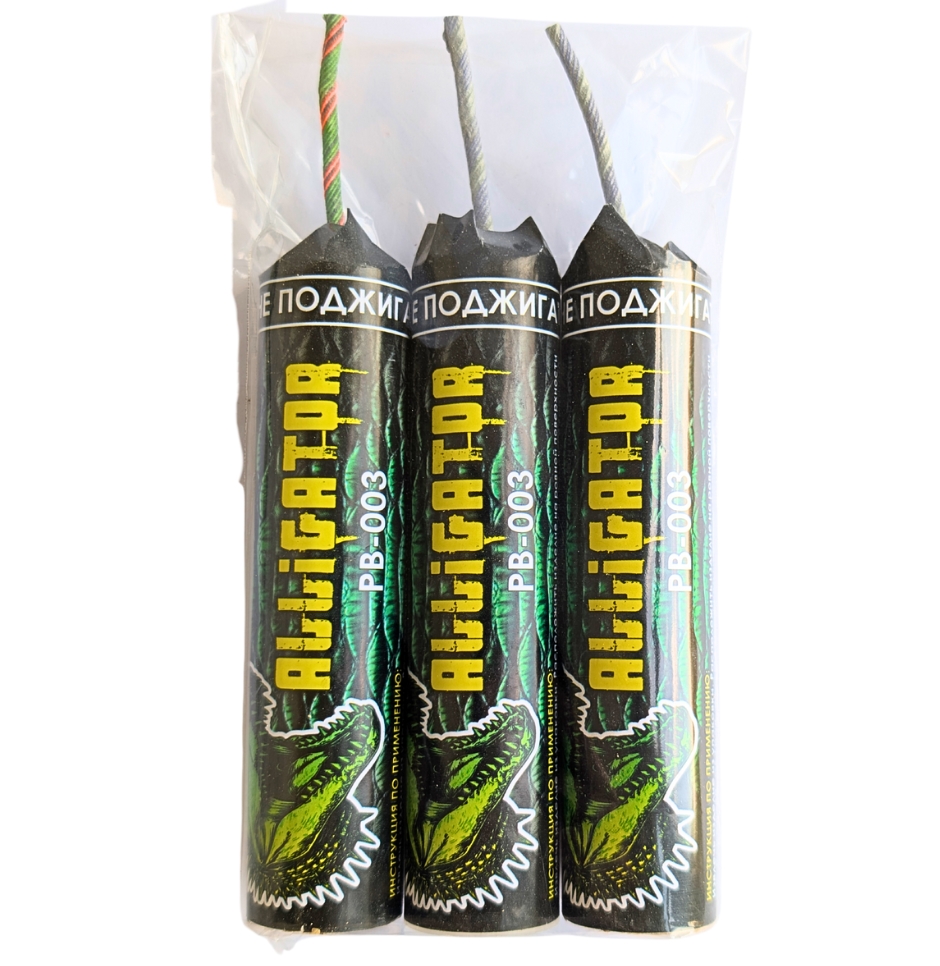 PB-003 Alligator в упаковке по 3 штуки — это компактный формат тех же самых легендарных петард от РПК Залп. Они создают яркую вспышку и мощный взрыв, сохраняя все характеристики старшей версии. Отличный вариант, если вы хотите узнать, какие мощные петарды можно купить для тестового запуска или в подарок.