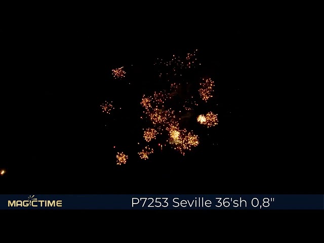 «Seville» от Magictime — это 36 залпов калибра 20 мм, создающих за ~35 секунд атмосферу страстной испанской ночи. Вспышки и треск напоминают ритмы фламенко, придавая вашему празднику колорит зажигательных танцев Севильи.