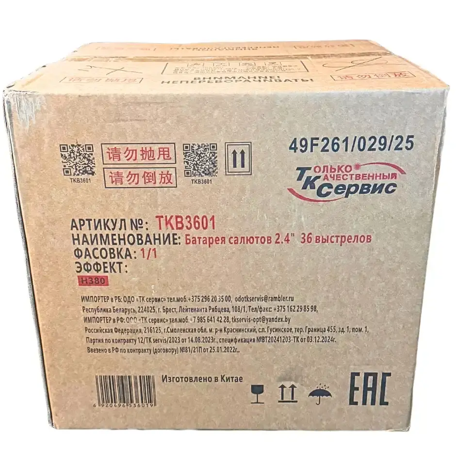 Если вы хотите, чтобы ваш праздник запомнился надолго, TKB3601 — то, что вам нужно. Этот салют легко станет центральным элементом всей программы и подарит настоящие эмоции. Доставляем по всей Беларуси и России.