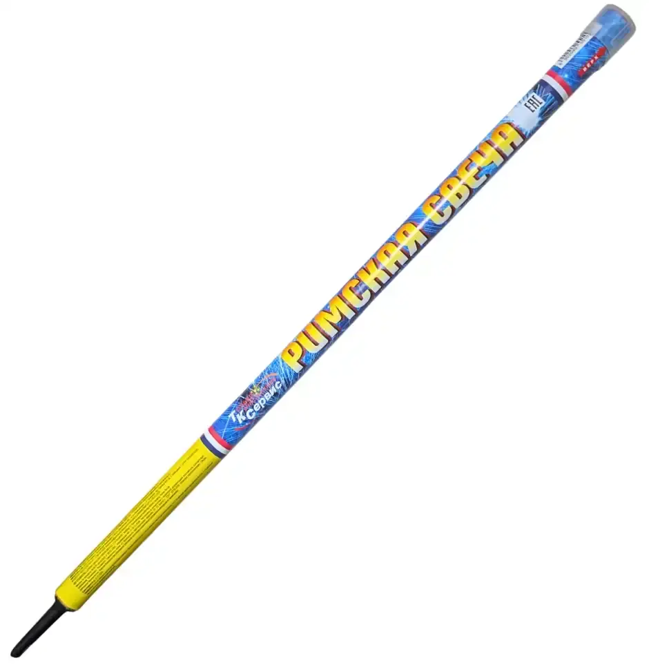 Установите римскую свечу вертикально, надёжно закрепив её в земле, песке или другом устойчивом основании. Убедитесь, что рядом нет легко воспламеняющихся предметов и что зона запуска свободна от людей в радиусе 15–20 метров. Поджигать фитиль нужно на вытянутой руке, не наклоняясь над изделием. После запуска не подходите к свече, пока она полностью не отработает и не остынет.